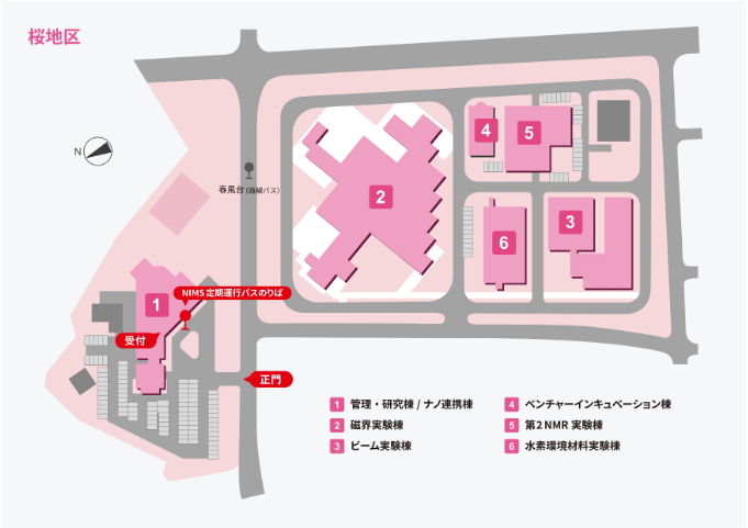 強磁場計測ユニットへお越しの際は、事前に NIMS 桜地区への入構手続きが必要です。初めて来所される方は、以下の案内をご確認ください。