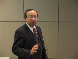 小出理事の開会挨拶に続き、御手洗副拠点長より拠点の研究紹介が行われ、続いて、三菱重工航空エンジン株式会社 技術マネジメントG 主席技師 貴志公博 様より、「MRJ用PW1200Gエンジンについて」、株式会社IHI 技師長 錦織貞郎 様より「航空機エンジン適用耐熱金属材料の開発」、超々ジュラルミン研究所(元 株式会社UACJ 技術開発研究所顧問)吉田英雄様より「航空機エンジン適用耐熱金属材料の開発」、中菱エンジニアリング株式会社 主査 阿部俊夫様より「航空機複合材の現状と課題」、株式会社IHI 主幹 中村武志様より「航空機エンジン用セラミックス材料」 と題したご講演を頂きました。最後に、構造材料研究拠点2050Visionタスクフォースリーダー小熊博幸からタスクフォースの活動について報告をいたしました。