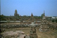 ワット・プラ・ラームには、プラーンという大きな塔堂があり、そこへ昇ると180度ぐるっとアユタヤが一望できる。視線を足下へ移すと、プラーンを囲うように整然と立派な回廊が作られている。地上に下りてその回廊に足を踏み入れるや、回廊に並べられた石仏たちは、無惨にも首や手足が切り落とされているではないか、破壊のすさまじさが忍ばれる。