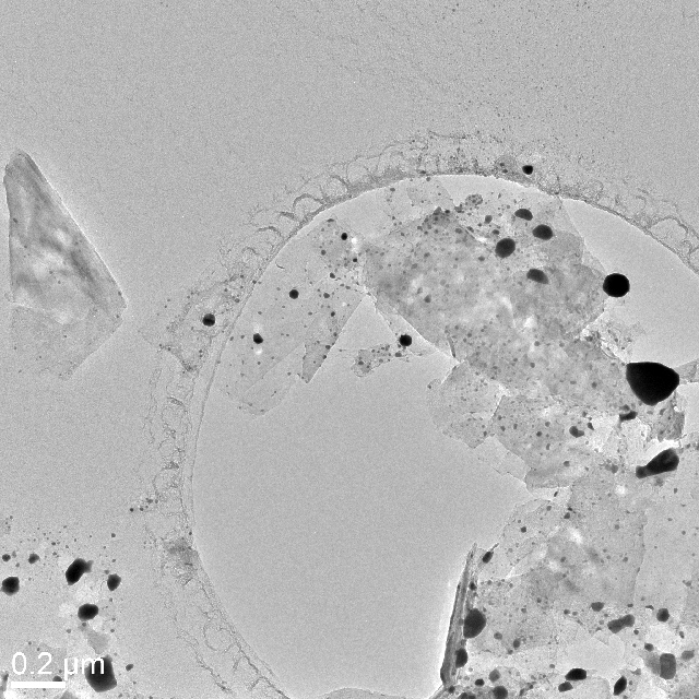 透過型は文字通り、対象物に電子を透過させて像を作り出し、内部の構造を観察します。ですので、対象物はかなり薄くしないといけません(0.1μm以下)。
