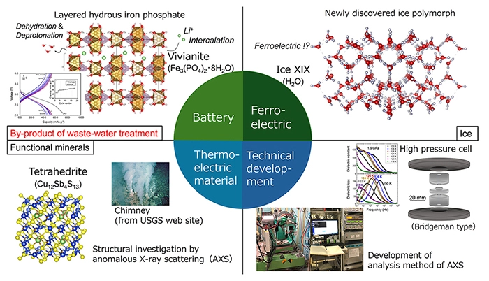 - Development of functional materials by utilizing "common materials" (such as natural minerals and biomass) to effectively harness their hidden properties.