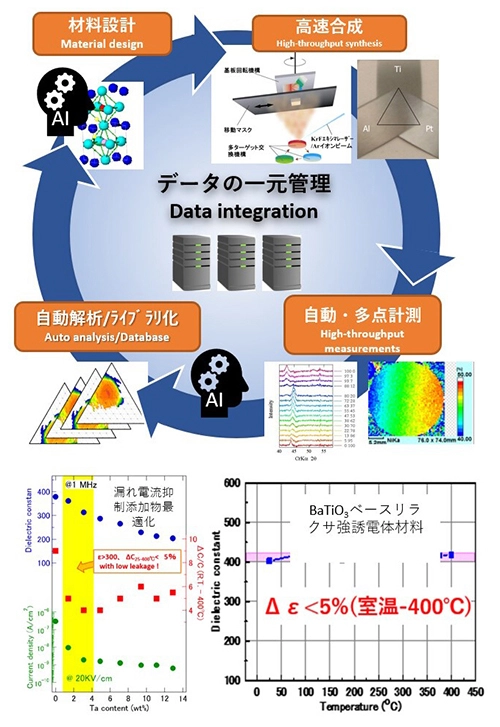 薄膜材料スマートラボにより、薄膜電子材料の高機能化と新材料探索を加速した。系統的な材料合成と解析により、薄膜誘電体の新規材料開発の提案と既存材料においても電子物性の向上と信頼性の向上を実現した。