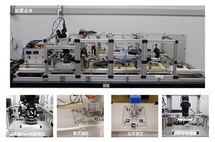 無機材料の様々な評価を自動で連続して行う“マテリアルシーケンサー”の開発を行った。写真は装置外観である。