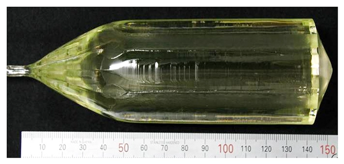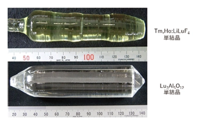 高温での圧電動作に有利な、400℃で1011Ω・cmという、LTGAと比較しても高い抵抗率を示す。可視~赤外までの幅広い波長域で高出力全固体レーザー用として有用な単結晶を育成。レーザー加工機やEye-Safeレーザーなど、各種の展開が期待される。
