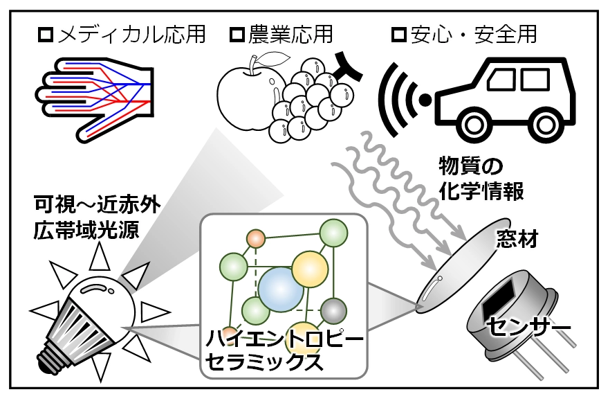 光学セラミックスは、高効率・安全・安心な社会を人々に提供するセンサー用の窓材、ならびに高輝度光源用光学材などにおいて不可欠なキーコンポーネントである。これらの要求に資する次世代光機能材料の実現に向け大きなブレークスルーをもたらすには、新規材料開拓に向けた挑戦が不可欠である。