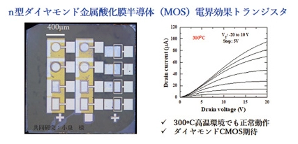 n型ダイヤモンド半導体デバイスとCMOS回路の開発に挑戦し、世界で初めてダイヤモンドn型電子デバイスMOSFETとMESFETの開発に成功した。