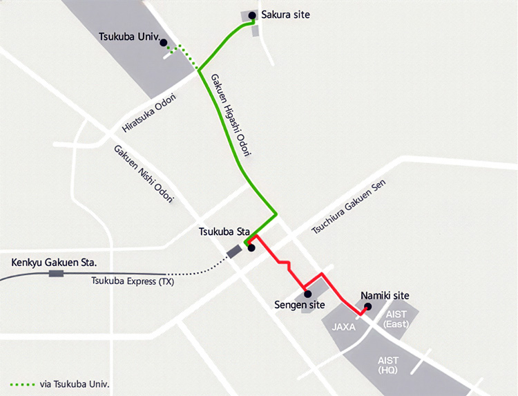 Some of the buses go via TX Tsukuba Station and the University of Tsukuba.