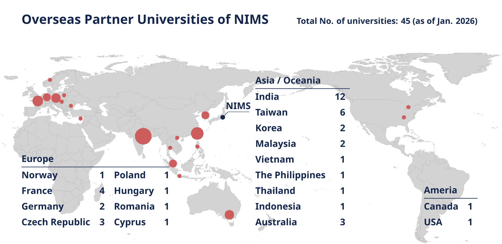 Many students visit NIMS and conduct cutting-edge materials research under the guidance of NIMS researchers through programs such as the 'NIMS Graduate Program' and the 'International Cooperative Graduate Program.'