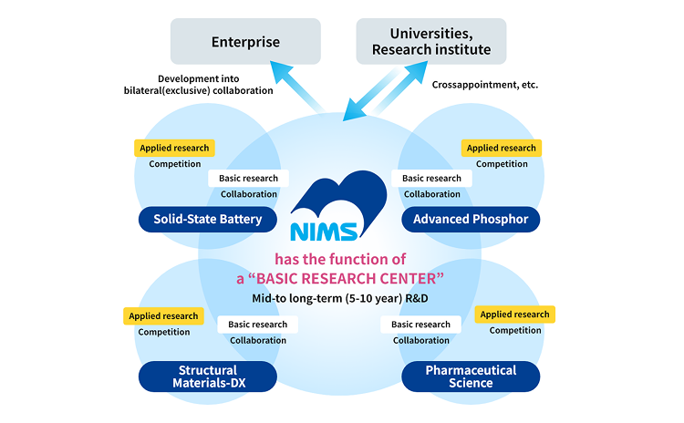 NIMS transitioned to a special national research and development corporation on October 1, 2016, under the 'Special Measures Law for the Promotion of Research and Development by Specific National Research and Development Corporations.' Positioned as a 'research institution excelling in specific fields,' NIMS is expected to produce world-leading results that form the foundation for scientific and technological innovation amid international competition.