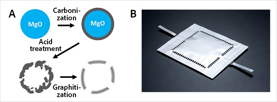 The team created this electrode by combining manufacturing technology that Toyo Tanso developed for its “CNovel™” porous carbon product with proprietary technology NIMS developed to fabricate self-standing carbon membranes.