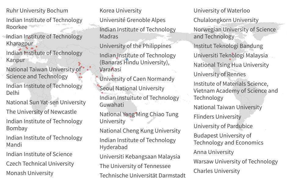 Universities around the world that collaborate with NIMS (as of September 2025)