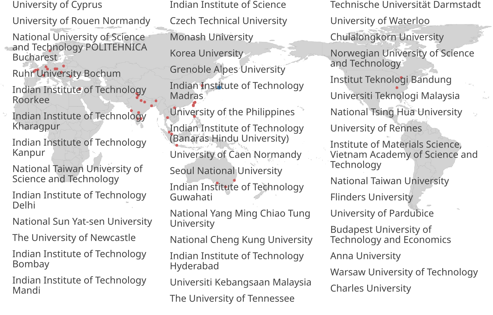 Universities around the world that collaborate with NIMS (as of January 2026)