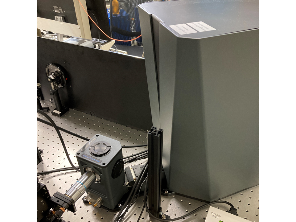 顕微分光測定システム2号機です。ナノポジショナとMontana Ins.のクライオスタットを組み合わせています。3.5 Kの極低温まで冷却可能で、超短パルスレーザーを用いた分光計測など様々な用途に使用します。