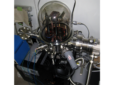 分子線エピタキシー法によって薄膜を成長させるための装置です。電子銃加熱、Kセル、エバポレータを用いて様々な原料を飛ばすことができます。