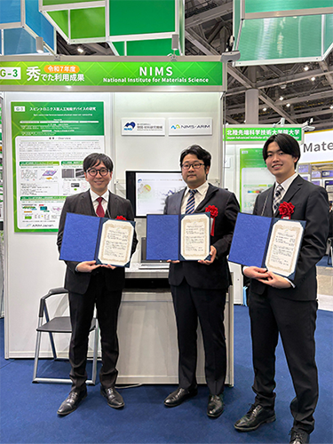 Takashi Tsuchiya Group Leader (Neuromorphic Devices Group), Wataru Namiki Researcher (Ionic Devices Group), and Sota Hikasa NIMS Junior Researcher (Neuromorphic Devices Group) received the Outstanding Achievement Award under the Advanced Research Infrastructure for Materials and Nanotechnology in Japan (ARIM) program of the Ministry of Education, Culture, Sports, Science and Technology (MEXT).The award ceremony was held on January 28, 2026, at the 26th International Nanotechnology Exhibition and Conference.