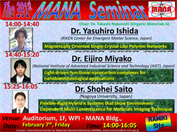 Prof. Myongsoo Lee (Yonsei University, Korea) and Dr. Bruce YU (RIKEN, Japan) delivered MANA Special Seminar as 4th Macromolecules seminar.