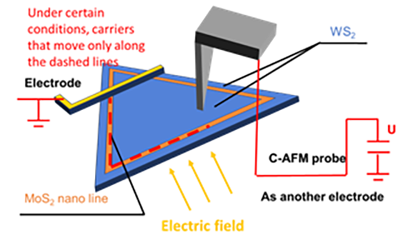 Carrier density is a crucial metric for semiconductor performance, often influencing device performance, reflecting the material‘s controllability and determining band filling and Fermi level, thereby influencing the material’s optical and electrical behavior. Two-dimensional materials are only one or a few atomic layers thick, so an external electric field can directly penetrate the entire material. The electric field has a significant impact on the distribution of electrons inside the material. Compared with three-dimensional materials, two-dimensional materials are more sensitive to changes in external electric fields. Therefore, applying an electric field to two-dimensional materials is an effective way to study carrier. Among many two-dimensional materials, TMDs (Transition Metal Dichalcogenides), with their two-dimensional structure and tunable properties, provide a unique platform for precisely controlling carrier behavior, making them key materials for next-generation electronic and optoelectronic devices. By using our laboratory’s advanced two-dimensional material MOCVD growth system, we have fabricated a single-layer two-dimensional heterostructure that WS2 with a nanoscale MoS2 channel embedded within it