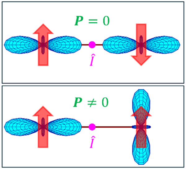 Nevertheless, there is another point, which was overlooked in the earlier considerations: the antiferro orbital ordering not only stabilizes the ferromagnetic interactions but also breaks the inversion symmetry Î in the bond, which is a necessary precondition for the ferroelectricity (Fig. 1). Thus, at least the single bond can be simultaneously ferromagnetic and ferroelectric. The next goal is to find the materials where these bonds can be arranged in the ferroelectric way, i.e. when the ferroelectric polarizations in all the bonds are pointed in the same direction. This would guarantee that the material will be ferroelectric (rather than antiferroelectric), and the inversion symmetry is macroscopically broken.