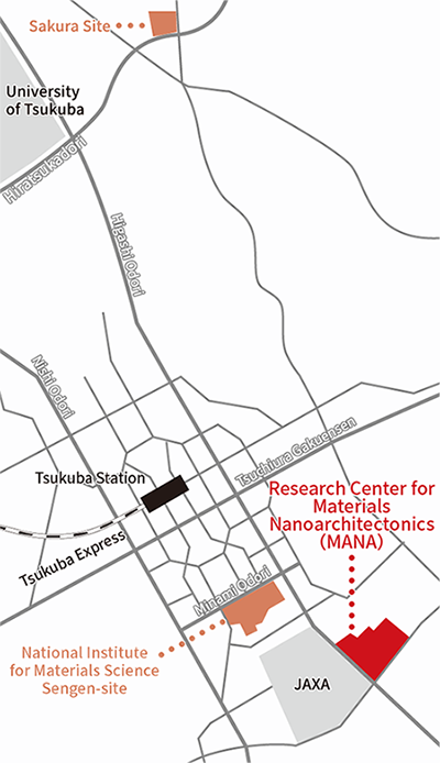 After getting off at Tsukuba station (Tsukuba Express) to get to MANA (Namik site of NIMS), the NIMS shuttle bus are available. Take the NIMS shuttle bus at "Bus stop #B" to get to MANA.