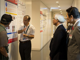 Dr. Takayoshi Sasaki (MANA PI) and Dr. Tsuyoshi Hasegawa (MANA PI) explained about their research on nanosheets and a brain-type device, respectively.