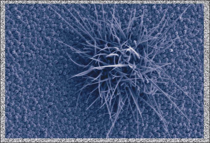 A SEM image of germanium nanowires grown on a silicon substrate.
