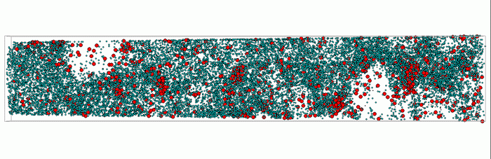 図12. Nd-Be-B-Cu合金から得られた3次元原子マップ(動画)。緑はNd原子、赤は銅原子を示す。