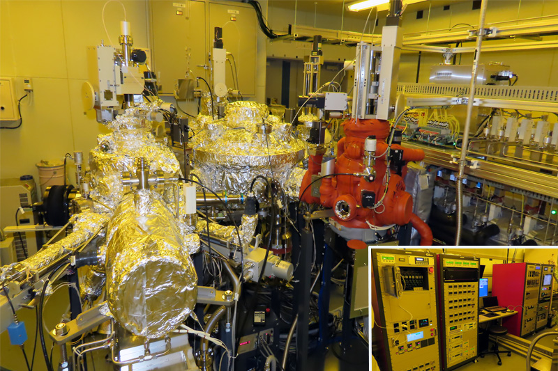 We have introduced an ultra-thin film deposition system for fabricating AI devices using various materials. This system consists of a sputtering chamber, an atomic layer deposition (ALD) chamber, a reflection high-energy electron diffraction (RHEED) analysis chamber, a molecular beam epitaxy (MBE) chamber, a load lock chamber and an automated sample transfer chamber.