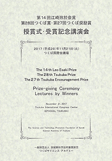 The Tsukuba Prize, founded in 1989, is awarded annually to those carrying out research in the field of science and technology in Ibaraki prefecture, and who have achieved significant research results. The prize is given by the Science and Technology Promotion Foundation of the Ibaraki Science Academy of Tsukuba, with the aim of contributing to the promotion of science and technology.