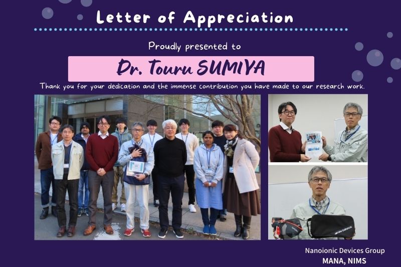 Ms. Itoh is leaving NIMS after being with the group for 14 long years since April 2008. She worked as a NIMS Special Researcher and a technical staff to support our group’s research work. Even if hte place of work changes, we hope that her smile will remain the same. Thank you for your many years of support, Itoh-san.