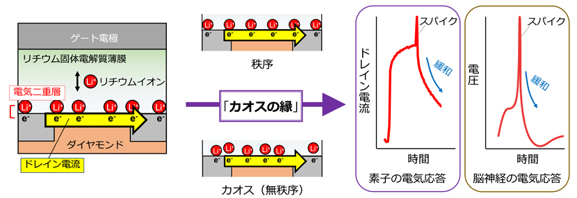 「カオスの縁」と呼ばれる脳の特徴を、固体電解質薄膜とダイヤモンドの界面近傍で起こるイオニクス現象で再現することで情報処理を行う高性能AI素子の開発に成功しました。本研究成果は米国科学雑誌Science Advancesに2022年12月15日付け(日本時間)でオンライン掲載されました。また、2022年12月27日付日刊工業新聞紙面および電子版に記事が掲載されました。