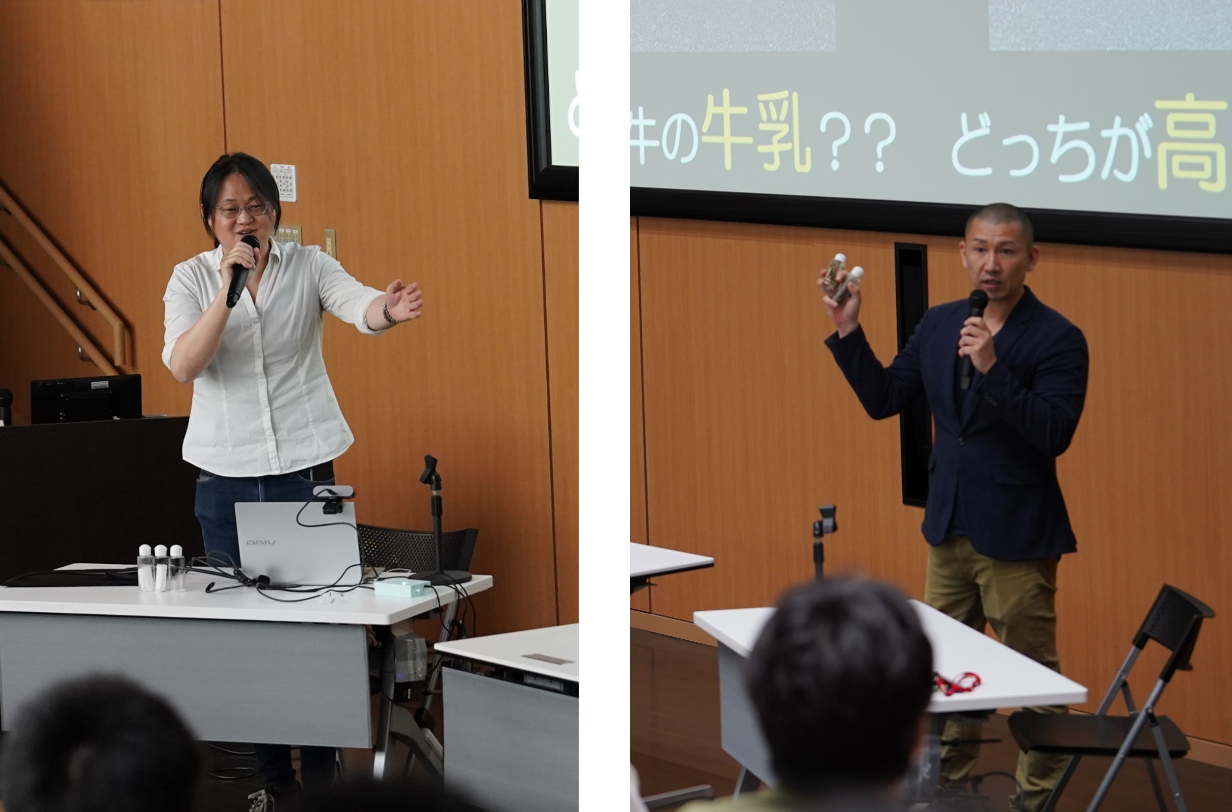 においセンサ研究者の吉川元起氏(左)と畜産研究者の中久保亮氏(右)