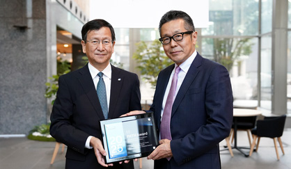 城内 実 内閣府特命担当大臣(科学技術政策)と宝野 和博 NIMS理事長
