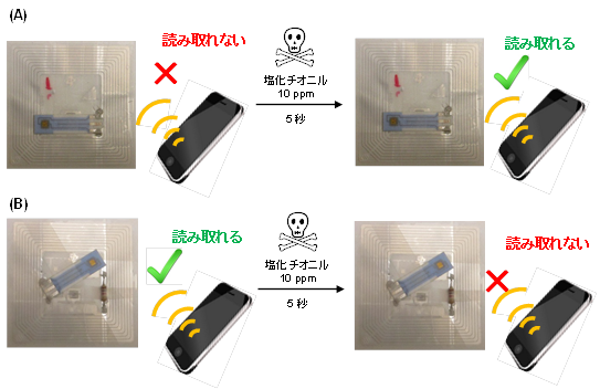 プレスリリースの図5 : スマートフォンとNFCタグを用いた有毒ガスセンサー