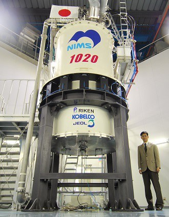 A research team consisting of NIMS, RIKEN, Kobe Steel, Ltd., and JEOL Resonance Inc. has successfully developed an ultra-high-field NMR system capable of generating a magnetic field at 1020 MHz—the highest in the world. This achievement was realized as part of JST program for the development of advanced measurement and analytical instruments, specifically the “Development of Ultra 1 GHz NMR Systems.”