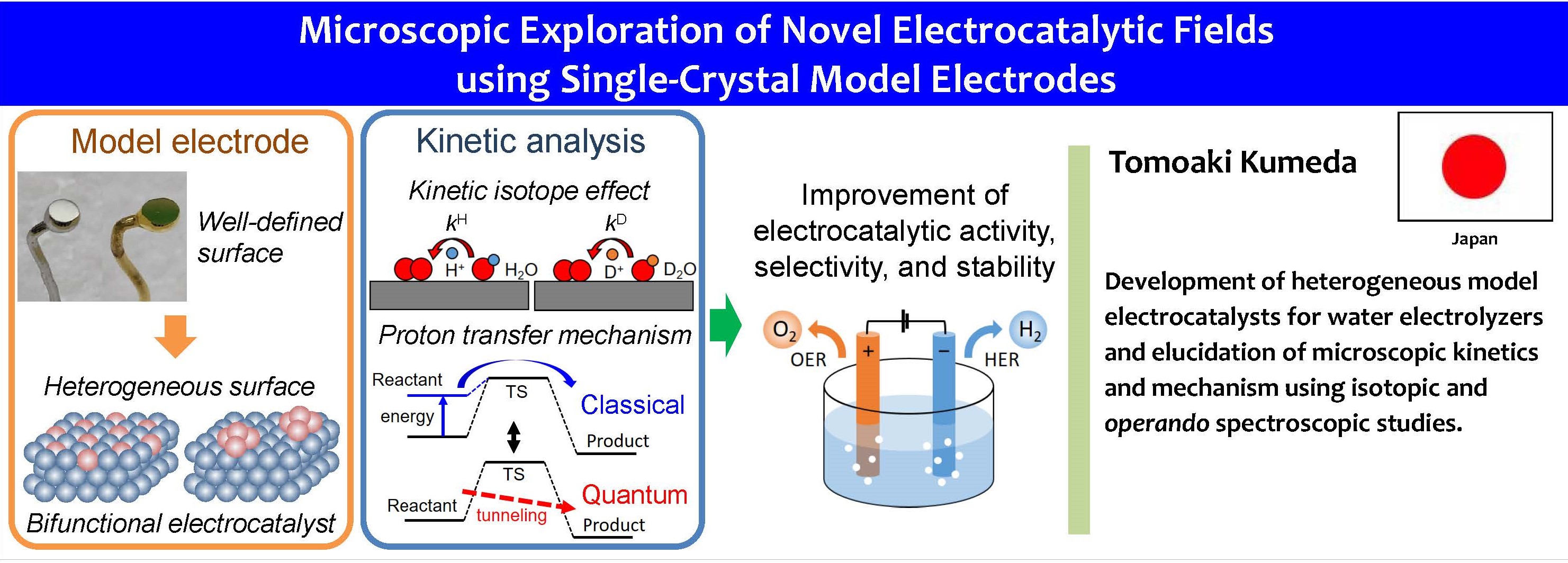 | Keywords | 電極触媒反応、エネルギー変換、反応速度論、単結晶電極、異種金属電極触媒 |