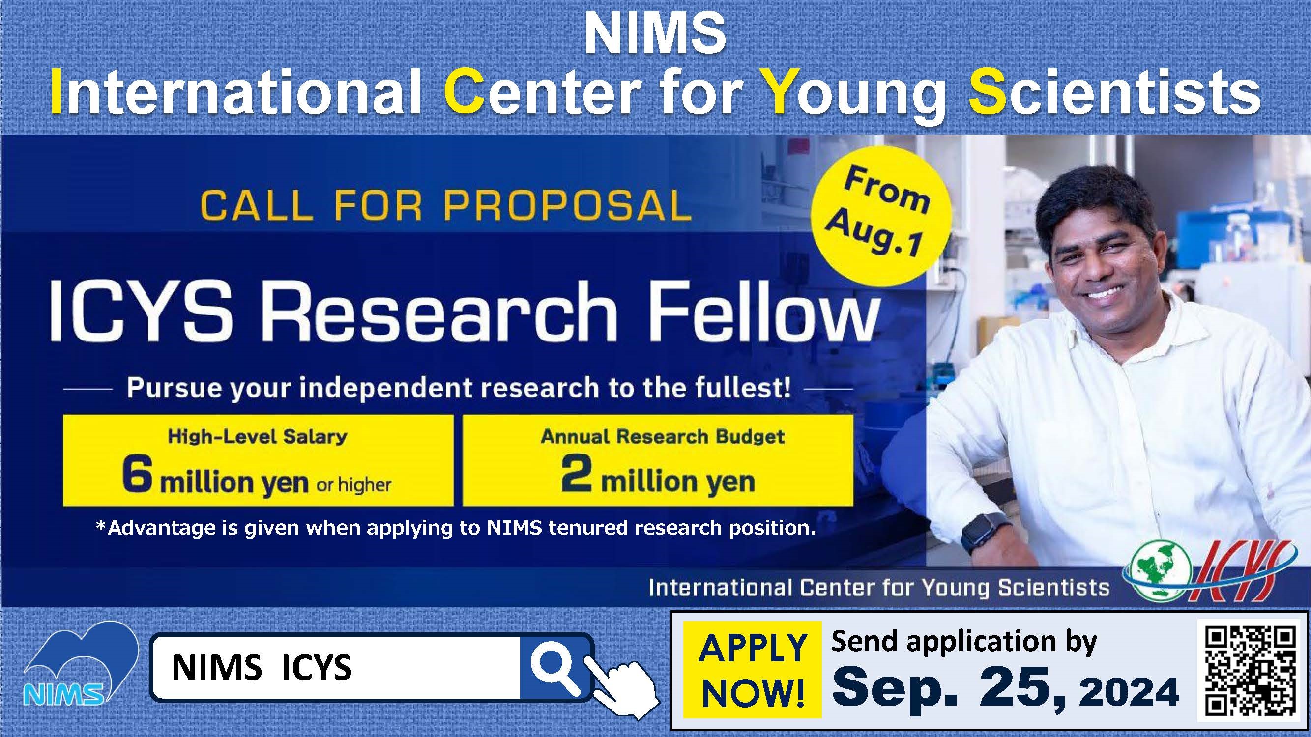 【Closed】Accepting Applications ICYS Research Fellows for FY2024-1st (Deadline:September 25)