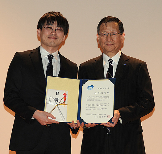 Dr.Daiki Nishioka(ICYS Research Fellow), and Dr.Akimitsu Ishii,Dr.Terumasa Tadano, Dr.Kotaro Doi and Dr.Shoichi Matsuda(ICYS alumni), received the 20th NIMS President Awards