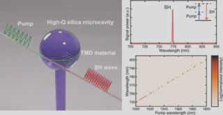 本研究では、超高速レーザーや量子技術などの応用に用いられる光非線形プロセスの鍵となる、2次と3次の感受率のバランスを柔軟に調整できるハイブリッドフォトニックプラットフォームを実証しました。超高Q値のシリカ微小共振器上に原子レベルの薄さのWSe2を配置することで、単一のデバイスで2次と3次の非線形性を共存させることに成功し、非線形感受率を制御したハイブリッドシステムの新たな応用への道を開きました。