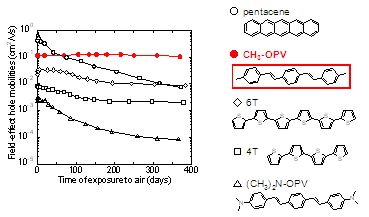現在において、有機エレクトロニクスに用いられているπ共役高分子は、有機溶剤に可溶でインクジェット法のような低コスト法が適用可能という利点が主に追求され、真空蒸着法で薄膜を作成する低分子材料に比べデバイス特性が劣るという風潮である。