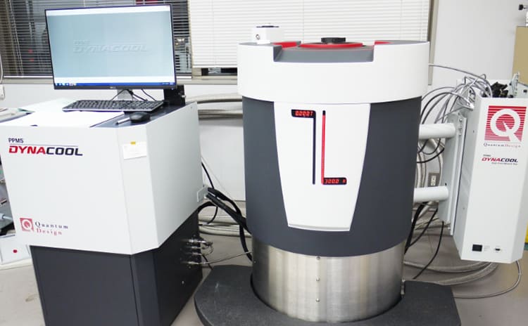 14Tの強磁場、2~1000 Kの温度が印加可能な物理測定装置です。電気特性、磁気特性、比熱測定が可能です。高温は磁気特性測定のみの対応になります。