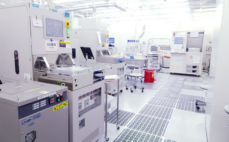半導体材料を中心としたデバイスプロセス研究のための微細加工クリーンルームです。多種多様な材料を用いて試行することが可能であり、小片試料からウェハ基板まで適応しているため、基礎基盤研究のみならず、応用を見据えた発展的な研究開発にも対応している共用施設です。