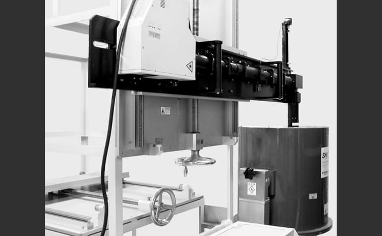 多数試料の自動測定が可能な単結晶X線構造解析装置です。最大48個の試料を格納し、ロボットアームによるキャピラリ試料の回折計への自動マウント、自動センタリングが可能です。無人連続測定で多数試料の結晶構造を調べることができ、新物質・新材料開発につながっています。