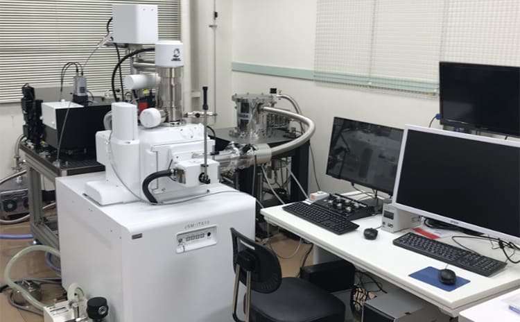 本装置は水素からウランまで同位体を含めた高精度・高感度分析を深さ方向に行えます。主に水素同位体や酸素同位体処理した試料の分析に使用しています。測定時の試料温度は室温と液体窒素温度を選択可能です。