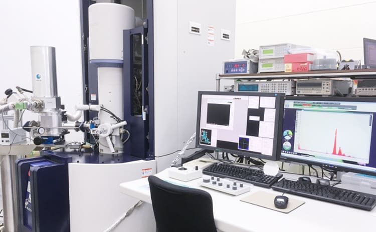 国内最高のエネルギー分解能を有する透過電子顕微鏡で、化学結合状態や誘電特性、格子振動などの情報を原子~ナノスケールで分光イメージングできます。高感度検出器を備え、微量元素のマッピングや有機材料の構造観察にも威力を発揮します。