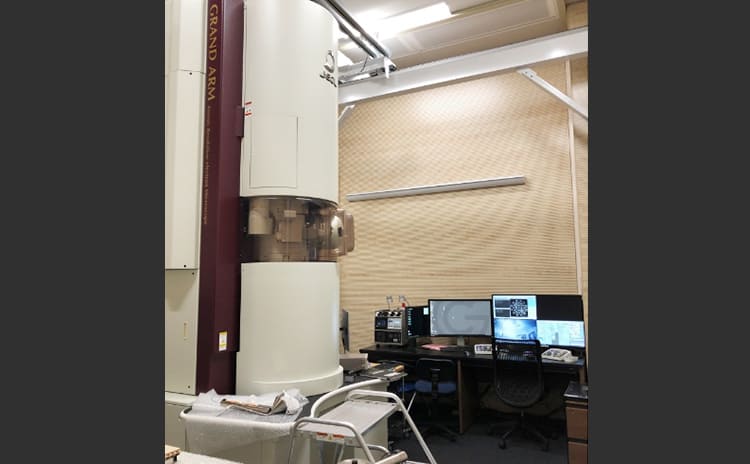 モノクロメーターとプローブ/イメージ用の2つの収差補正装置を備えた透過電子顕微鏡です。局所領域の原子配列を直接観察できます。高分解能TEM像、走査透過電子顕微鏡(STEM)像、ローレンツ像、4D-STEM、電子エネルギー損失分光法(EELS)などが可能です。