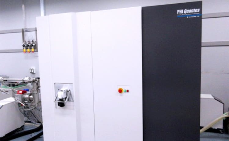 2種類のX線源 (Cr Kα、Al Kα) を有し、試料の表面酸化や汚染の影響を抑えた検出深さ20 nm程度のバルク分析が可能です。ガスクラスターイオン銃を用いた有機材料の深さ方向分析、大気非暴露測定、加熱・冷却中の試料への電圧印加測定、オペランド測定に対応しています。