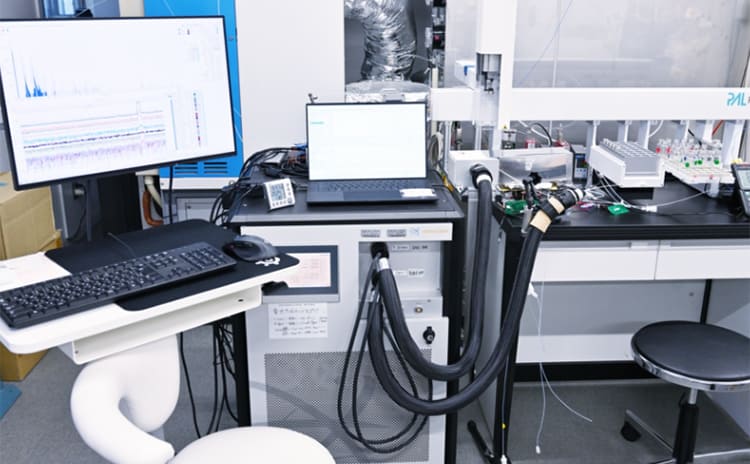 ppt (1兆分の1) という極微量のガス成分をリアルタイムで測定可能な超高感度ガス分析装置です。ヒト、動物、植物、細菌などの生体から発生するガス (呼気、皮膚ガス、尿ガスなど) を計測し、非侵襲診断・非接触検査などを目指す嗅覚センサの研究開発に貢献しています。