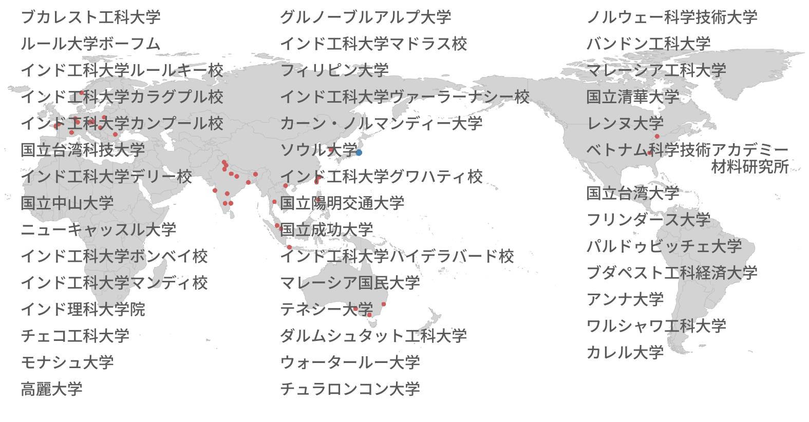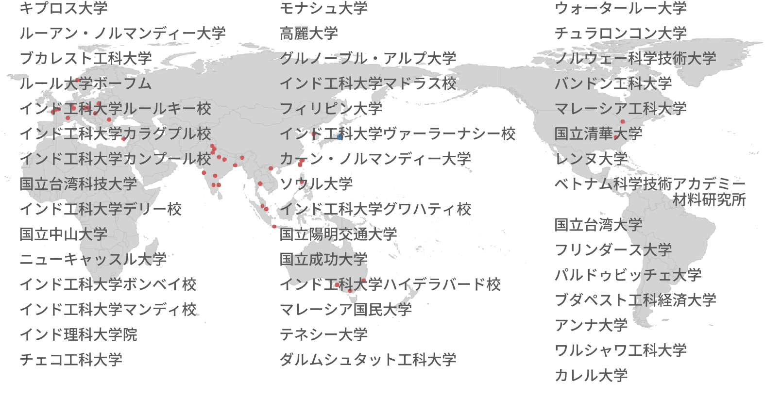 世界有数の大学院と提携し、博士後期課程の学生を受け入れ、NIMS研究者が研究指導をするプログラムです。