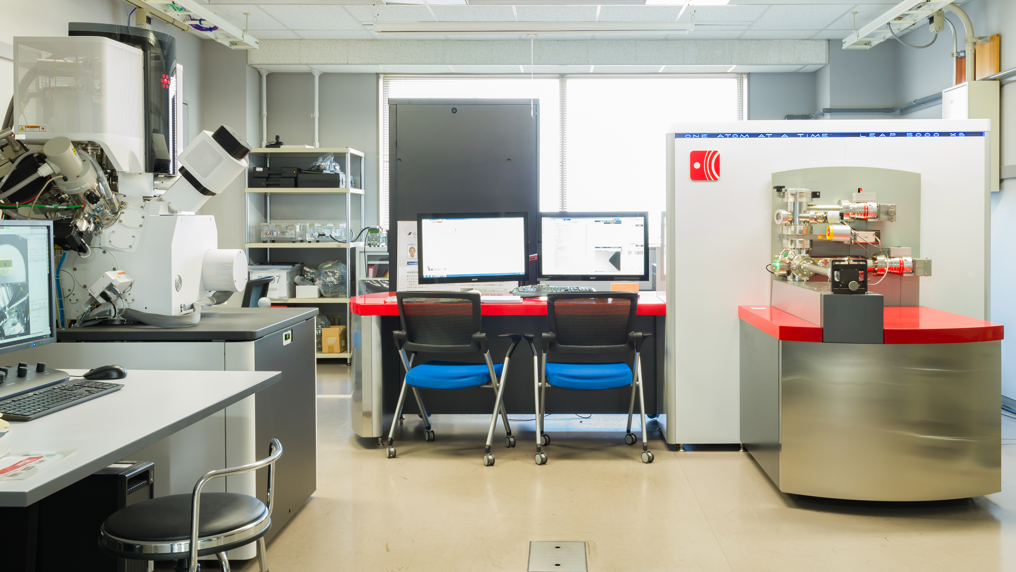 3次元アトムプローブ(APT: atom probe tomography, or 3DAP; three-dimentional atom probe)は、曲率半径~ 50 nmの針状試料に高い電圧を印可することで試料先端に高電界を形成し、電界蒸発(イオン化)のトリガーとしてレーザーパルス(もしくは電圧パルス)を照射します。試料先端からイオン化された原子が検出器に到達するまでの飛行時間(Time-of-Flight)と検出位置(x, y)を連続的(z)に計測することにより、100万倍以上の倍率での原子分布を3次元に可視化できる唯一の手法です。例えば、ナノスケールのデバイス中の元素分布、材料中の元素の不均一な分布、半導体ドーパントなどの微量添加元素を精度良く解析することができます。